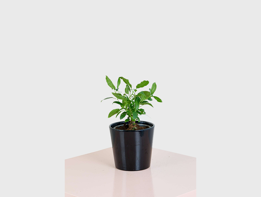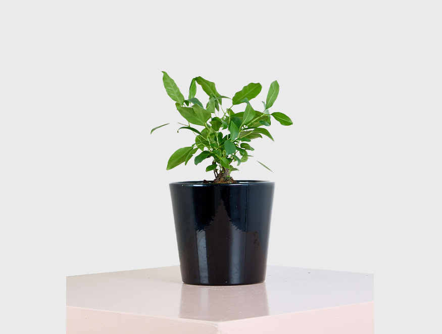 Dwarf Ficus in Glossy Black Planter
