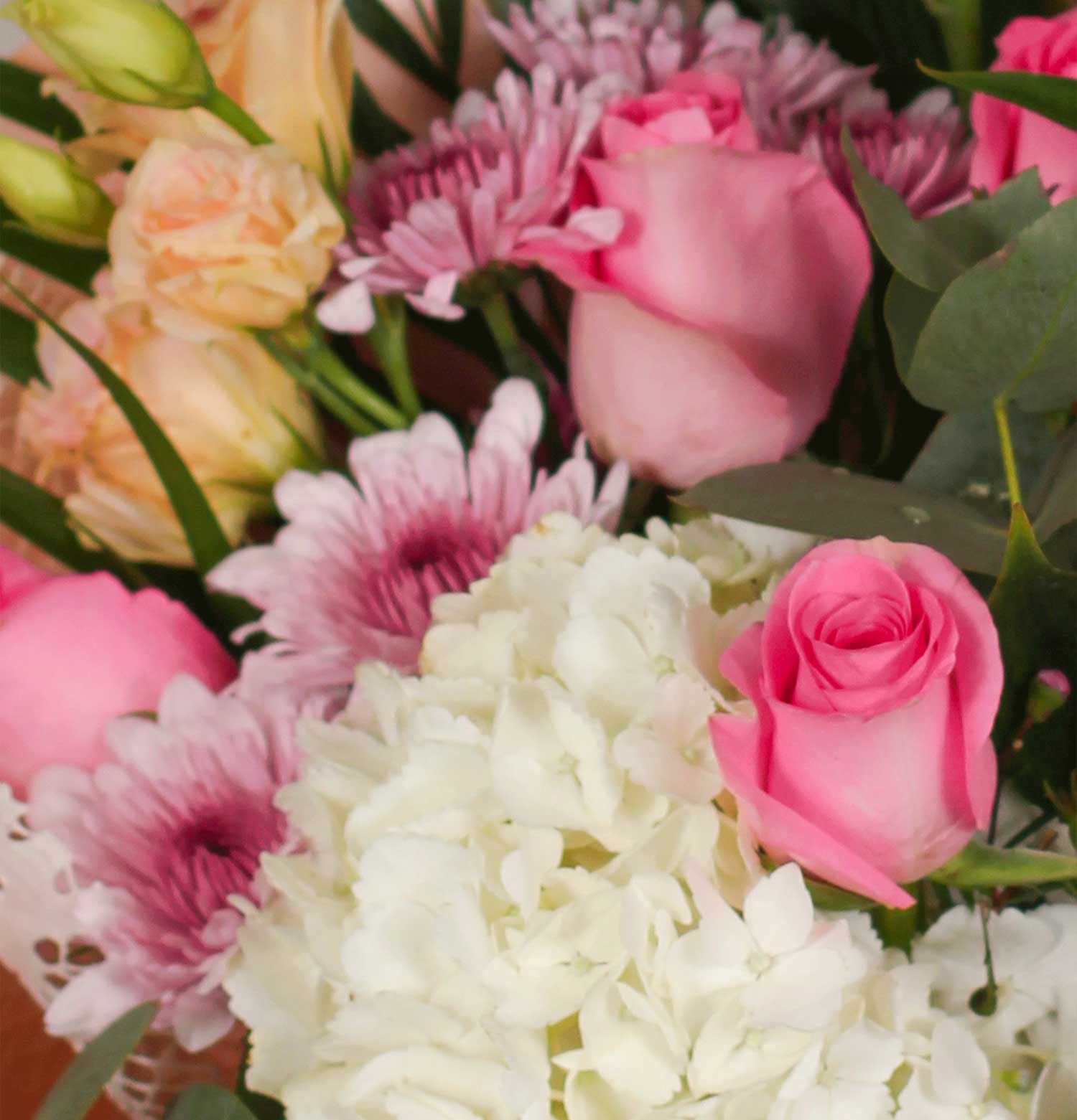 Ivory and Pink Rose and Hydrangea Flower Bouquet