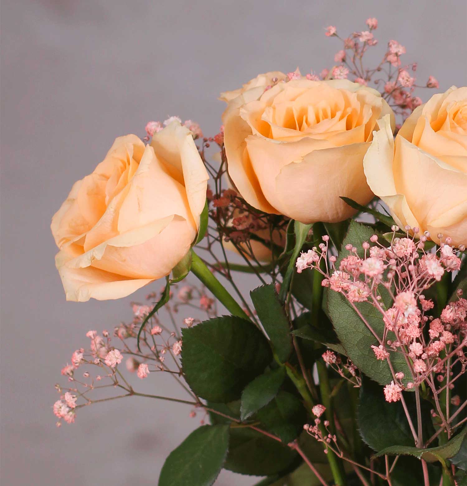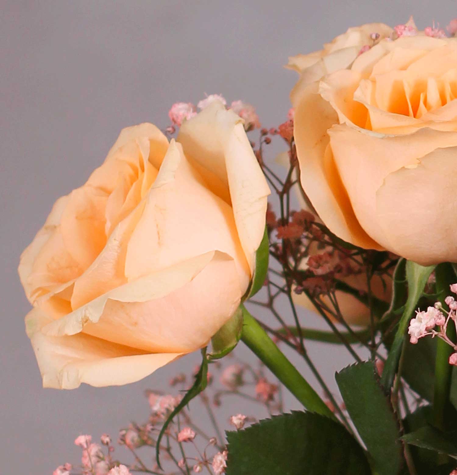Evoking the tranquility of a gentle breeze on a warm day, this arrangement features lush, buttery yellow roses interspersed with sprigs of ethereal baby’s breath. Each bloom is carefully arranged in a slender, clear vase, providing a vision of simplicity and elegance. This bouquet promises to deliver a message of calm and serenity to any space.