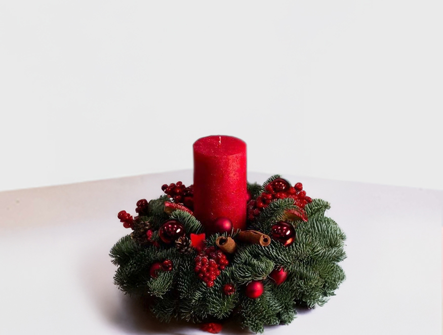 Set the festive mood with this elegant holiday centrepiece. Designed to add warmth and charm to your Christmas celebration, this stunning arrangement brings timeless beauty to any table or mantel. Its vibrant hues and sophisticated design make it a must-have for creating a cozy and inviting holiday ambiance. Bring a warm, glowing touch of Christmas magic to your home with this elegant holiday centrepiece!