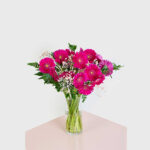 Bold and vibrant, this striking bouquet of bright pink Gerberas exudes joy and passion. Paired with Baby’s Breath and lush greenery, it’s perfect for making a statement or adding a pop of color to any space.