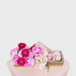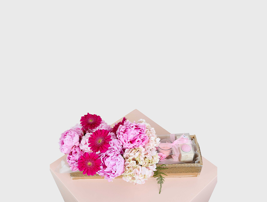 Celebrate every special moment with this elegant pink floral arrangement! Featuring luxurious peonies and bold gerberas, this stunning design is the epitome of feminine charm. Paired with a delightful candle gift set, it’s perfect for pampering someone you love. Whether it’s for a birthday, anniversary, or just to brighten someone’s day, this arrangement will make an unforgettable impression. Let this thoughtful gift spread warmth and joy, leaving a lasting memory.