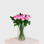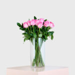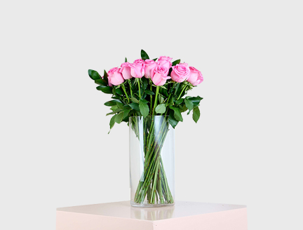 Add a touch of grace to any room with this exquisite arrangement of fresh pink roses, carefully handpicked to perfection. Presented in a sleek, clear vase, these vibrant blooms convey elegance and charm, making it an ideal gift for any occasion.