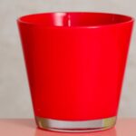 This bold red vase brings a splash of color and contemporary style to any decor. Its sleek design is perfect for showcasing vibrant flowers or standing alone as a statement piece.