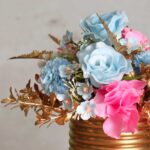 The “Short and Sweet Artificial Flower Arrangement” offers a touch of minimalist elegance with its pastel blooms and gold-toned vase. This tastefully understated piece combines the softness of pink and blue flowers with the warm glint of gold, perfect for adding a serene yet luxurious accent to intimate gatherings or chic interior spaces.